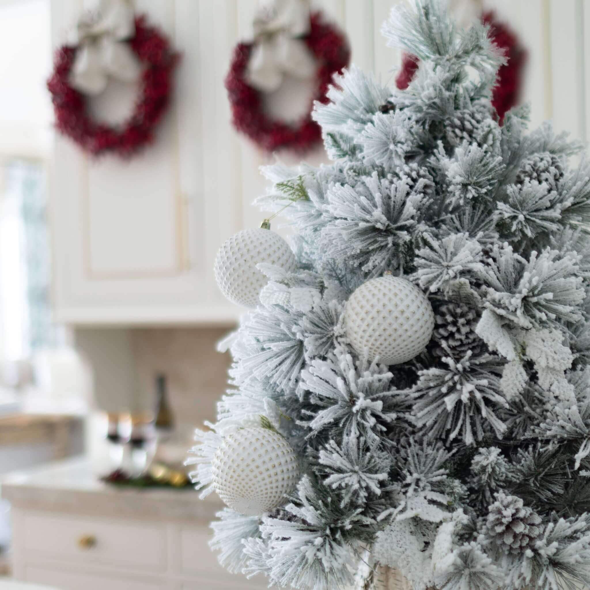 We see you. You have an eye for style and creation. When you want to take your centerpiece to the next level, look no further than our 4-piece White Diamond hand blown ornament set. With an exclusive design that is unlike anything else, this refined ornament set will be the highlight of your centerpiece and the topic of many conversations. These unique pieces feature a white base highlighted by diamond shaped silver accents. This gorgeous glass ornament set comes packaged in a velvet lined box, carefully molded to each ornament for safe storage season after season.